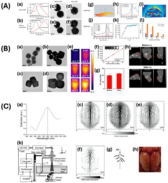 - Nguyen, V.P.; Qian, W.; Li, Y.; Liu, B.; Aaberg, M.; Henry, J.; Zhang, W.; Wang, X.; Paulus, Y.M. Chain-like Gold Nanoparticle Clusters for Multimodal Photoacoustic Microscopy and Optical Coherence Tomography Enhanced Molecular Imaging. Nat. Commun. 2021, 12, 34. [Google Scholar] [CrossRef]