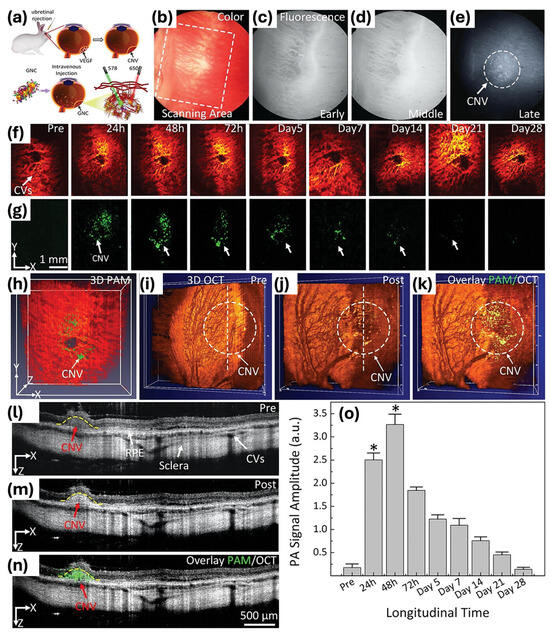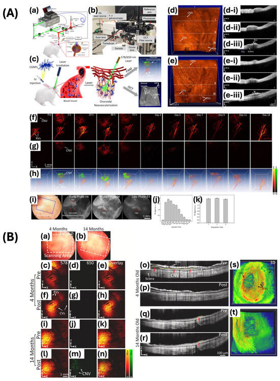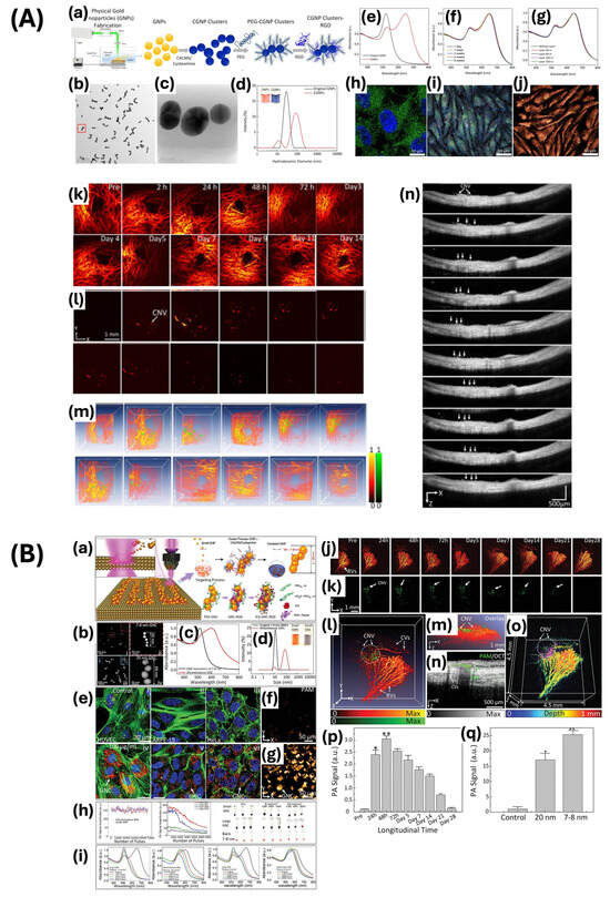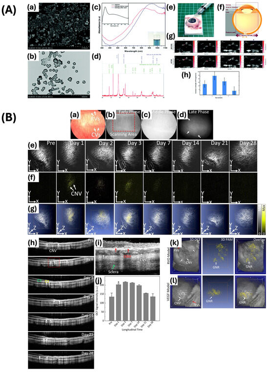 - Nguyen, V.-P.; Li, Y.; Henry, J.; Zhang, W.; Wang, X.; Paulus, Y.M. Gold Nanorod Enhanced Photoacoustic Microscopy and Optical Coherence Tomography of Choroidal Neovascularization. ACS Appl. Mater. Interfaces 2021, 13, 40214–40228. [Google Scholar] [CrossRef]