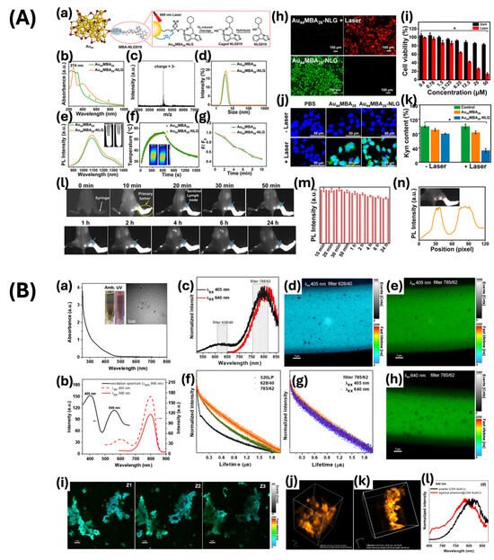 - Yang, G.; Pan, X.; Feng, W.; Yao, Q.; Jiang, F.; Du, F.; Zhou, X.; Xie, J.; Yuan, X. Engineering Au44 Nanoclusters for NIR-II Luminescence Imaging-Guided Photoactivatable Cancer Immunotherapy. ACS Nano 2023, 17, 15605–15614. [Google Scholar] [CrossRef]