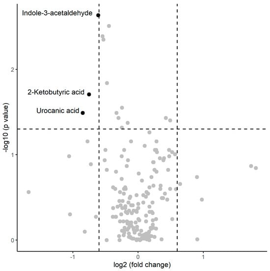 | Indole-3-acetaldehyde | −0.7354908 | 0.4792702 |