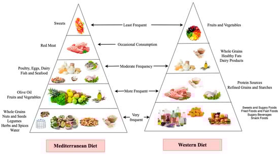 - García-Montero, C.; Fraile-Martínez, O.; Gómez-Lahoz, A.M.; Pekarek, L.; Castellanos, A.J.; Noguerales-Fraguas, F.; Coca, S.; Guijarro, L.G.; García-Honduvilla, N.; Asúnsolo, A.; et al. Nutritional components in western diet versus Mediterranean diet at the gut microbiota–immune system interplay. Implications for health and disease. Nutrients 2021, 13, 699. [Google Scholar] [CrossRef] [PubMed]