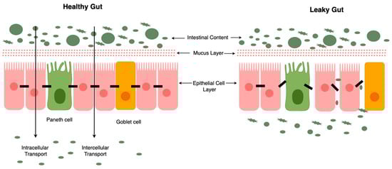 - Camilleri, M. Leaky gut: Mechanisms, measurement and clinical implications in humans. Gut 2019, 68, 1516–1526. [Google Scholar] [CrossRef]