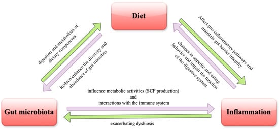 A Comprehensive Review of the Triangular Relationship among Diet–Gut Microbiota–Inflammation