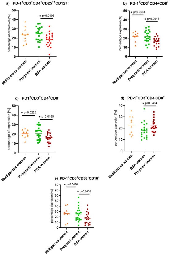 Zych, M.; Kniotek, M.; Roszczyk, A.; Dąbrowski, F.; Jędra, R.; Zagożdżon, R. Surface Immune Checkpoints as Potential Biomarkers in Physiological Pregnancy and Recurrent Pregnancy Loss. Int. J. Mol. Sci. 2024, 25, 9378. https://doi.org/10.3390/ijms25179378