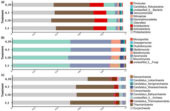 2.3.3. Structural Compositions and Differences in Soil Microbial Communities