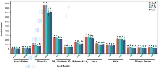 2.5. Comparison of Abundance Differences in N-Cycling Genes