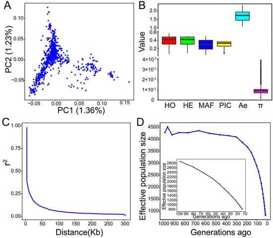 - Zhang, C.; Dong, S.S.; Xu, J.Y.; He, W.M.; Yang, T.L. PopLDdecay: A fast and effective tool for linkage disequilibrium decay analysis based on variant call format files. Bioinformatics 2019, 35, 1786–1788. [Google Scholar] [CrossRef] [PubMed]
