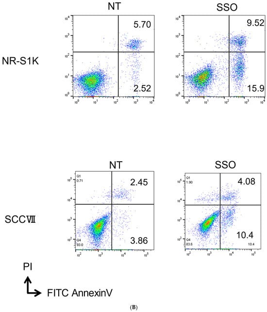 Furthermore, SSO treatment also significantly increased the proportion of apoptotic cell death of NR-S1K cells and SCCVII cells (Figure 1B).