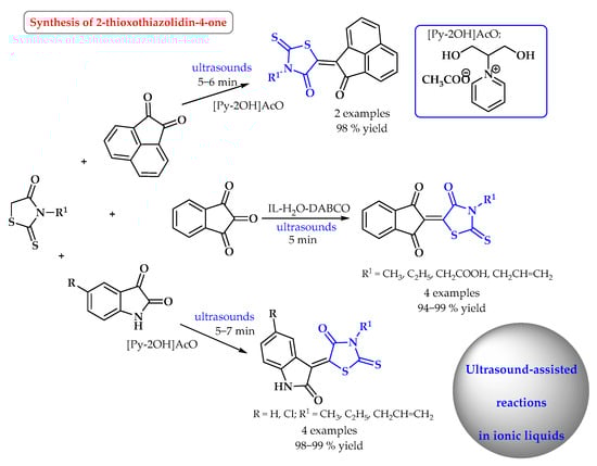 3.2. Synthesis of S-Heterocycles in Water Using Microwave or Ultrasound Radiation