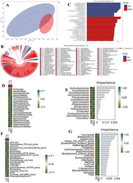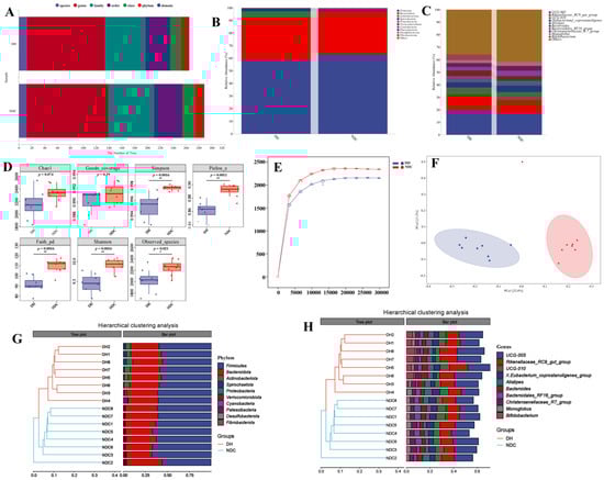 2.2. The Difference in the Gut Microbiota Abundance between the DH and NDC Groups