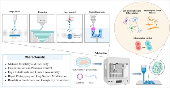 - Jiu, J.; Liu, H.F.; Li, D.J.; Li, J.R.; Liu, L.; Yang, W.J.; Yan, L.; Li, S.Y.; Zhang, J.; Li, X.K.; et al. 3D bioprinting approaches for spinal cord injury repair. Biofabrication 2024, 16, 032003. [Google Scholar] [CrossRef]
