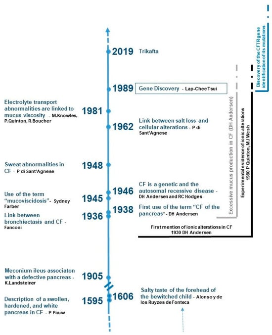 In 1989, the year of its discovery, the race for the cystic fibrosis (CF) gene had already begun four years earlier. A significant milestone was reached in 1985, with a genetic linkage study locating a gene associated with the disease on the long arm of chromosome 7 [1,2]. This pivotal moment set the stage for intense scientific competition. European teams, led by Robert Williamson in London, and North American teams, led by Lap Chee Tsui in Toronto embarked on a challenging and competitive journey to identify the gene responsible for CF. The North American consortium ultimately emerged victorious, publishing three seminal articles in the journal Science in September 1989, describing successful positional cloning and unveiling a new gene, the CF transmembrane conductance regulator (CFTR) gene responsible for CF [1,3,4]. This discovery was a landmark in the history of medical genetics, transforming our understanding of CF at the molecular level and setting the stage for future research and therapeutic development. It transformed, within a generation, a disease almost exclusively affecting children into a chronic adult condition [5,6,7]. This transformation accompanied a remarkable change in patient management and modified the epidemiological landscape of CF. Indeed, the identification of the CFTR gene not only elucidated the genetic basis of CF but also paved the way for important changes in patients’ care. Prior to this discovery, CF was considered a pediatric disease, and many patients do not reach adulthood. Advancements in medical treatments, due to the increased understanding of the CFTR gene and its mutations, have significantly improved patient outcomes, improving life expectancy and quality of life. Comprehensive care centers, advances in antibiotic therapy, nutritional support, and the development of CFTR modulators are just a few of the innovations that have contributed to this progress. As a result, the median age of survival for individuals with CF has steadily increased. Furthermore, the discovery of the CFTR gene has catalyzed a new era of research focused on understanding the diverse mutations and their effects on CFTR protein function. This has led to the development of personalized medicine approaches, where treatments can be tailored to the specific genetic mutations present in each patient. The introduction of CFTR modulators, which directly target the defective CFTR protein, represents one of the most significant advancements in CF therapy, offering improved lung function and quality of life for many patients.