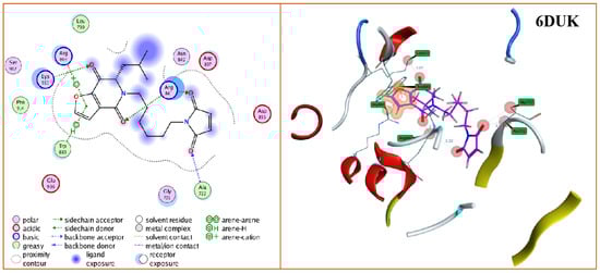 The compounds with more excellent activity were investigated via docking methodology against METAP2 and EGFR proteins. The X-ray crystal structure of two proteins was obtained from the Protein Data Bank (https://www.rcsb.org/, accessed on 20 April 2024). Molecular docking of compounds with excellent biological activity with three-dimensional X-ray structures of two proteins was carried out using a molecular manipulation environment (MOE 2019). Compound structures were built using the builder interface of the MOE program and subjected to energy minimization using the included Forceeld MMFF94x calculations.