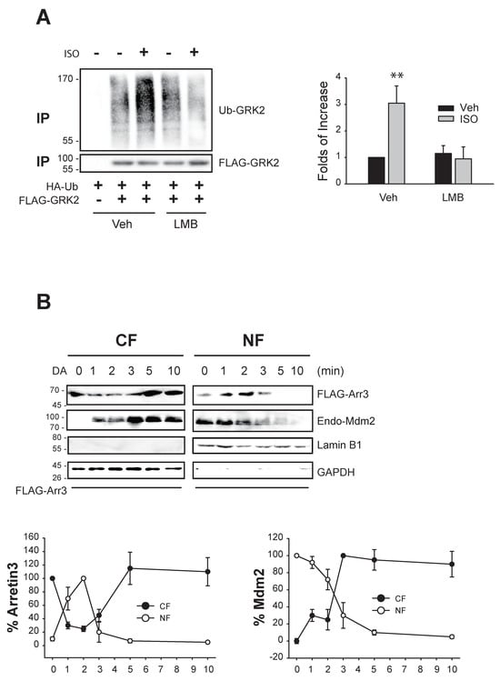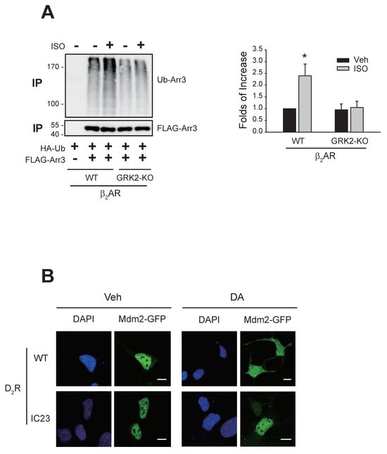2.5. Receptor Phosphorylation Mediate Arrestin3 Ubiquitination and Nuclear Export of Mdm2, Which Are Needed for GRK2 Ubiquitination