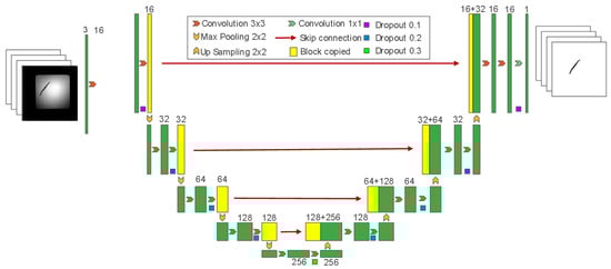To accurately segment the central line of the worms, we employed a deep learning-based approach utilizing a U-Net architecture (Figure 6). U-Net is well-known for its effectiveness in biomedical image segmentation, owing to its ability to accurately describe intricate structures in noisy biomedical images.