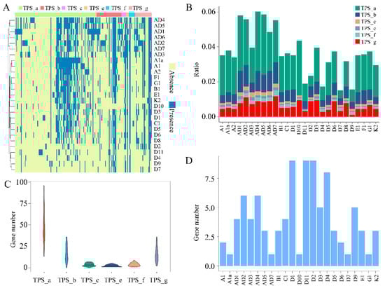 2.2. Identification of TPS Gene Family Based on Gossypium Pangenome