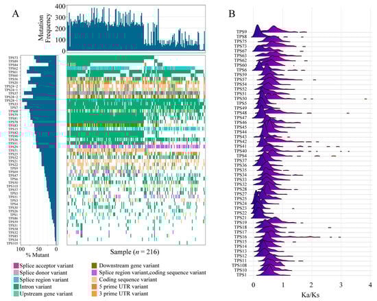 2.3. Mutational Load Analysis and Selection Pressure Analysis of Identified TPS Genes