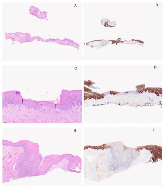 - Tabor, M.P.; Braakhuis, B.J.; van der Wal, J.E.; van Diest, P.J.; Leemans, C.R.; Brakenhoff, R.H.; Kummer, J.A. Comparative molecular and histological grading of epithelial dysplasia of the oral cavity and the oropharynx. J. Pathol. 2003, 199, 354–360. [Google Scholar] [CrossRef]