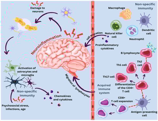- Salvador, A.F.; de Lima, K.A.; Kipnis, J. Neuromodulation by the immune system: A focus on cytokines. Nat. Rev. Immunol. 2021, 21, 526–541. [Google Scholar] [CrossRef]