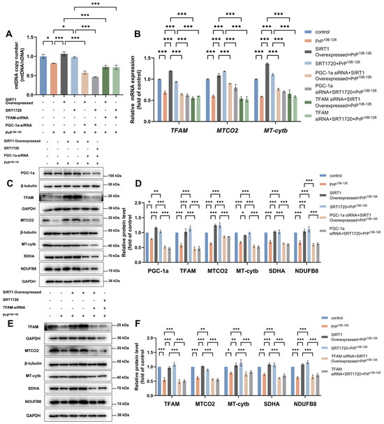 Zhao M, Li J, Li Z, Yang D, Wang D, Sun Z, Wen P, Gou F, Dai Y, Ji Y, et al. SIRT1 Regulates Mitochondrial Damage in N2a Cells Treated with the Prion Protein Fragment 106–126 via PGC-1α-TFAM-Mediated Mitochondrial Biogenesis. International Journal of Molecular Sciences. 2024; 25(17):9707. https://doi.org/10.3390/ijms25179707