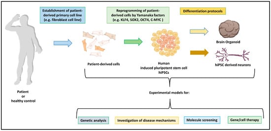 One promising application of iPSCs consists of modeling diseases. Furthermore, the differentiation of neural cells from iPSCs could help to elucidate the complex mechanisms that lead to their development during cell differentiation. Cell lines derived from these iPSCs would not only be disease specific, but also patient specific, bearing different pathogenetic variants. Ultimately, once a disease-representing iPSC line is established, these lines could serve as models for targeted drug therapies. Finally, iPSCs can serve as a source of cell-transplantation treatments entirely derived from patients. This could help in regenerating damaged tissues and reversing or ameliorating the course of disease [38].