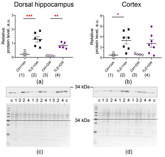 - Kharisova, A.R.; Roginskaya, A.I.; Zubareva, O.E. Effect of Cardarine on Gene Expression of Proteins Involved in Epileptogenesis in Rat Hippocampus in the Lithium-Pilocarpine Model of Temporal Lobe Epilepsy. J. Evol. Biochem. Physiol. 2024, 60, 1064–1081. [Google Scholar] [CrossRef]