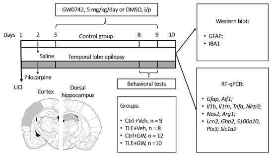 - Peng, J.; Wang, K.; Xiang, W.; Li, Y.; Hao, Y.; Guan, Y. Rosiglitazone polarizes microglia and protects against pilocarpine-induced status epilepticus. CNS Neurosci. Ther. 2019, 25, 1363–1372. [Google Scholar] [CrossRef] [PubMed]