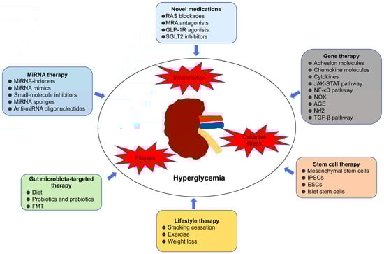 - Mohsen, M.; Elberry, A.A.; Mohamed Rabea, A.; Abdelrahim, M.E.A.; Hussein, R.R.S. Recent therapeutic targets in diabetic nephropathy. Int. J. Clin. Pract. 2021, 75, e14650. [Google Scholar] [CrossRef] [PubMed]