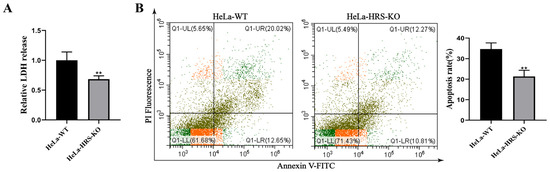 2.3. Knockout of HRS Significantly Suppresses NDV-Induced Cell Death of HeLa Cells