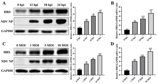 APA StyleChen, Y., Wang, C., Hu, S., & Liu, X. (2024). HRS Facilitates Newcastle Disease Virus Replication in Tumor Cells by Promoting Viral Budding. International Journal of Molecular Sciences, 25(18), 10060. https://doi.org/10.3390/ijms251810060