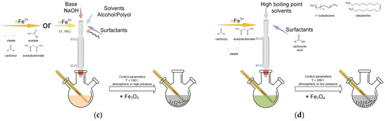 | Fe3O4 | Oxidative precipitation | 22 26 34 Cubic | 130 170 120 | 2.54 × 109 | High-quality Fe3O4 nanocrystals were prepared. The highest SAR was noticed for a cubic particle with an edge of 170 nm. | [72] |