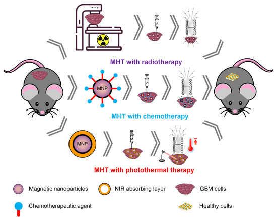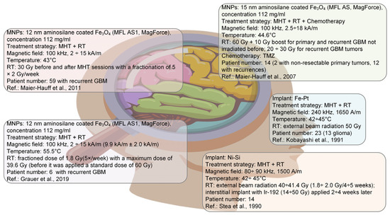 - Gupta, R.; Sharma, D. Evolution of Magnetic Hyperthermia for Glioblastoma Multiforme Therapy. ACS Chem. Neurosci. 2019, 10, 1157–1172. [Google Scholar] [CrossRef] [PubMed]