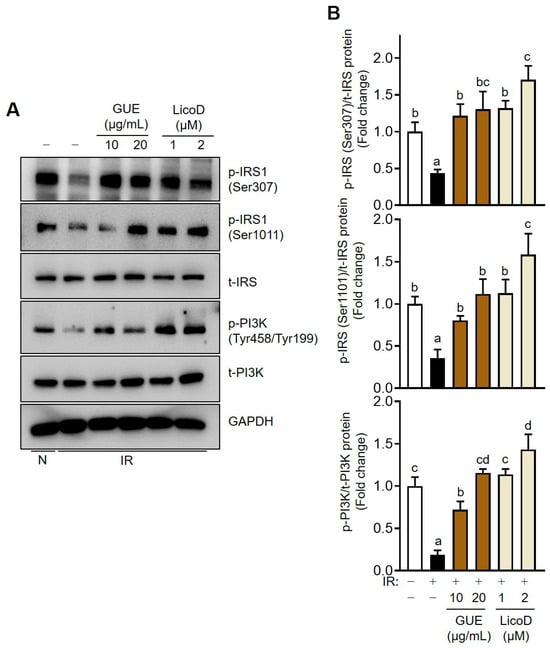 2.3. Enhancement of the IRS/PI3K Pathway by GUE or LicoD in IR Hepatocytes