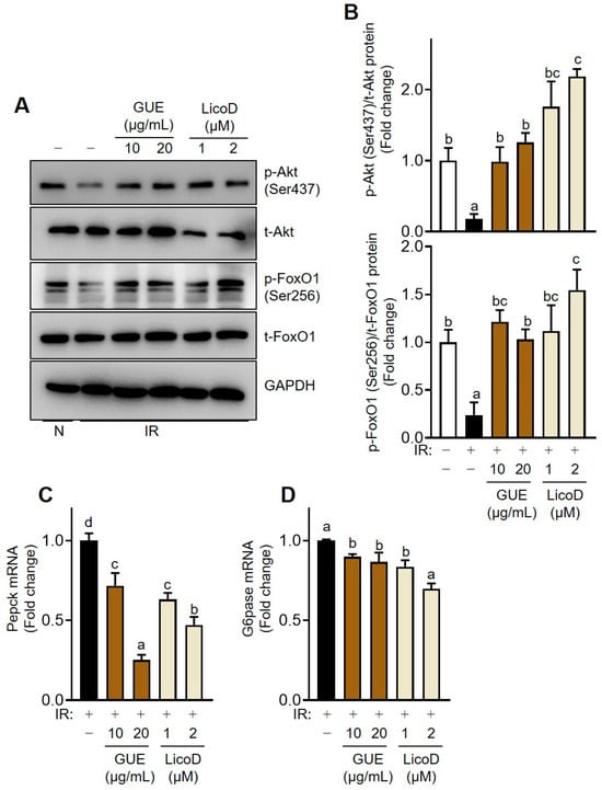 2.4. Inhibition of Akt-Mediated Gluconeogenesis by GUE or LicoD in IR Hepatocytes