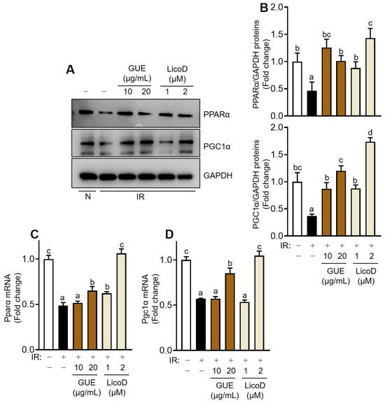 2.6. Improvement of the PPARα/PGC1α Pathway by GUE or LicoD in IR Hepatocytes