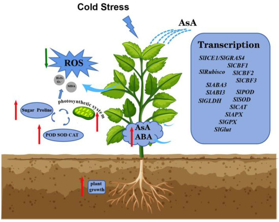 Figure 8. Schematic diagram of exogenous AsA treatment to improve cold tolerance of tomato seedlings under LT.