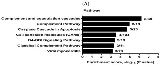 Differentially expressed genes were analyzed using Gene Set Enrichment Analysis (GSEA) for the KEGG pathway and GO term enrichment. A p value < 0.05 was set as the cutoff to select significantly enriched terms. Putative miRNA targets were predicted using TargetScan (http://www.targetscan.org/), miRDB (http://mirdb.org/miRDB/), and DIANA (http://diana.imis.athena-innovation.gr/DianaTools/) databases (accessed on 15 January 2024). Only targets consistently identified across all three databases were considered.