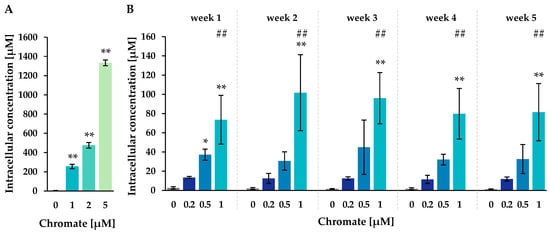2.2. Chromate Uptake in A549 Cells Was Concentration- and Time-Dependent