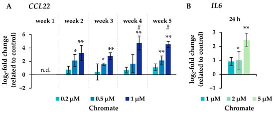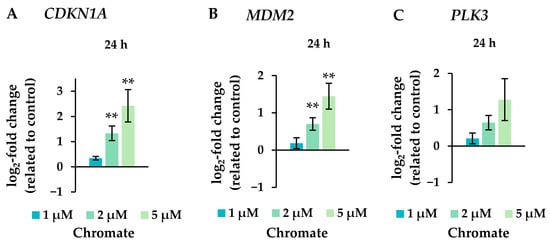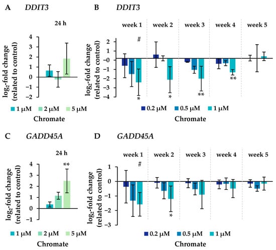 Chicago/Turabian StyleFischer, Franziska, Sandra Stößer, Lisa Wegmann, Eva Veh, Tatjana Lumpp, Marlene Parsdorfer, Paul Schumacher, and Andrea Hartwig. 2024. "Chromate Affects Gene Expression and DNA Methylation in Long-Term In Vitro Experiments in A549 Cells" International Journal of Molecular Sciences 25, no. 18: 10129. https://doi.org/10.3390/ijms251810129