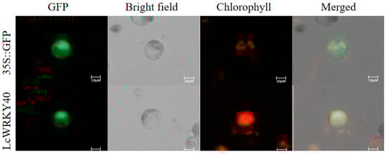 4.4.3. Subcellular Localization Analysis of the LcWRKY40 Protein