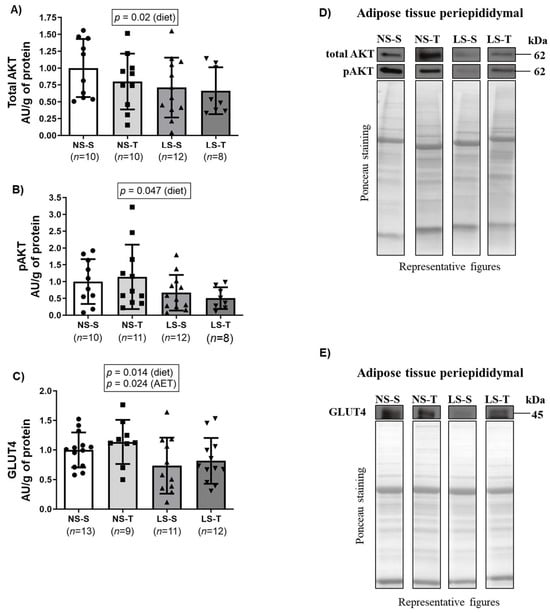 | NS-S | NS-T | LS-S | LS-T | Diet (p) | AET (p) | Interaction (p) | |