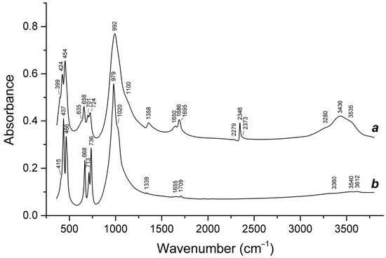 | 3600–3670 | Stretching vibrations of OH− |