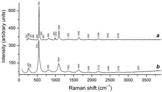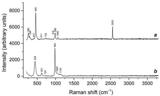 | 1135–1152w | SO42− asymmetric stretching vibrations [F2(ν3) mode], possibly, overlapping with S2•− overtone (2 × ν1) |