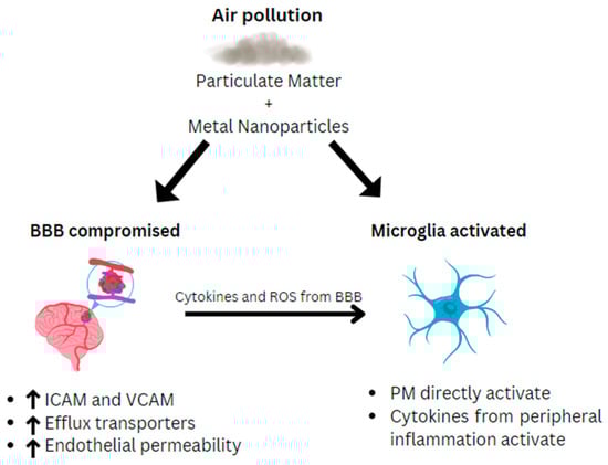 - Kang, Y.J.; Tan, H.Y.; Lee, C.Y.; Cho, H. An Air Particulate Pollutant Induces Neuroinflammation and Neurodegeneration in Human Brain Models. Adv. Sci. 2021, 8, 2101251. [Google Scholar] [CrossRef]