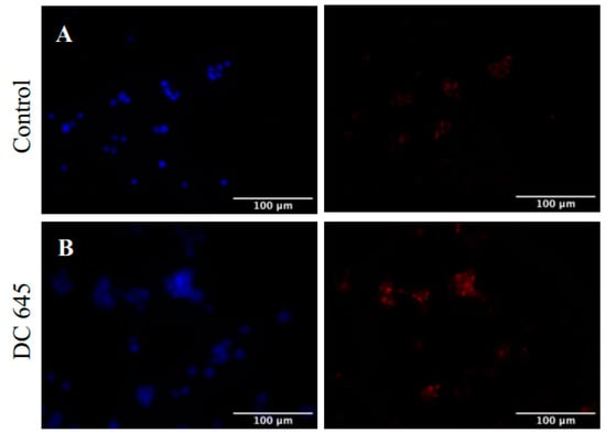 Effects of Ellorarxine (DC645) on CD200 immunofluorescent staining of differentiated WT NSC-34 cells. Staining of both untreated (A), control, cells, and those treated with Ellorarxine (10 nM) (B) for DAPI (left, blue) and CD200 (right, red). Semi-quantitative immunofluorescence revealed CD200 expression was more prevalent in differentiated cells treated with Ellorarxine than without (representative figure from n = 4 replicates). Imaging was carried out at one magnification, ×20, on the Zeiss Apotome microscope. Cells without any primary antibody were used as a negative control. Scale bars = 100 µm.