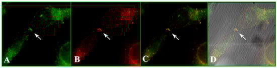 CaM–connexin binding was also studied by immune fluorescence microscopy [,]. In HeLa cells expressing Cx32, CaM, and Cx32 co-localized at cell–cell contact (Figure 11) [,]. Cells expressing Cx43 or Cx37 gave similar data (Sotkis and Peracchia, unpublished), and so did cells expressing Cx50 [,] or Cx36 [].