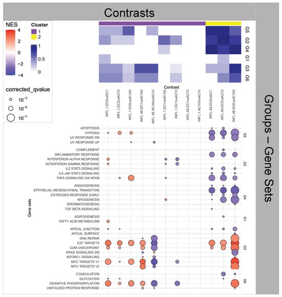 | 3. What is the impact of stimuli on the inflamed state? | INFL.1.DC1vsNO, INFL.1.DC5vsNO, INFL.1.AC10vsNO, INFL.1.AC100vsNO, INFL.48.DC1vsNO, INFL.48.DC5vsNO, INFL.48.AC10vsNO, INFL.48.AC100vsNO |