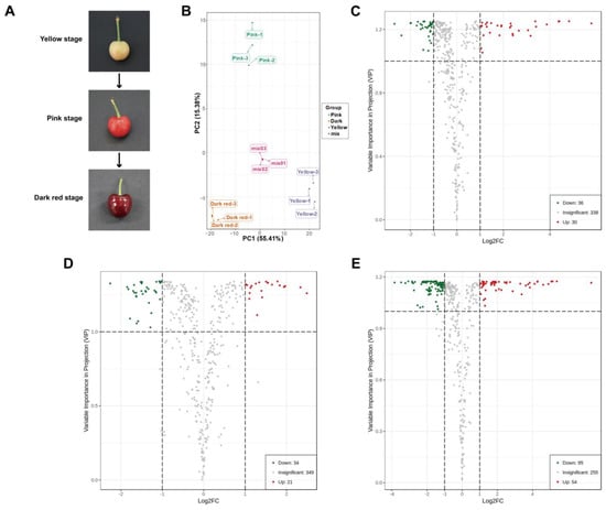 - Chen, C.Q.; Chen, H.X.; Yang, W.L.; Li, J.; Tang, W.J.; Gong, R.G. Transcriptomic and metabolomic analysis of quality changes during sweet cherry fruit development and mining of related genes. Int. J. Mol. Sci. 2022, 23, 7402. [Google Scholar] [CrossRef]
