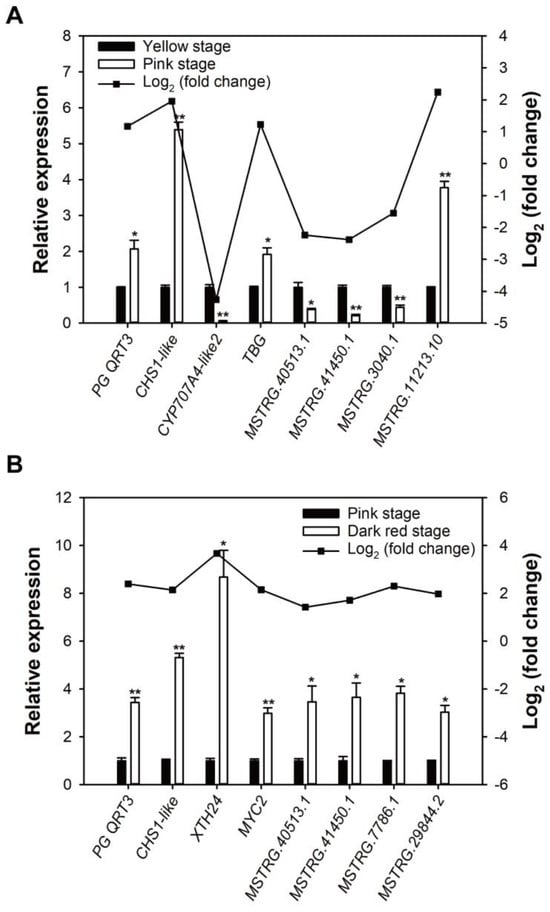 - Wu, Y.W.; Xu, J.; Han, X.M.; Qiao, G.; Yang, K.; Wen, Z.; Wen, X.P. Comparative transcriptome analysis combining SMRT- and Illumina-based RNA-Seq identifies potential candidate genes involved in betalain biosynthesis in pitaya fruit. Int. J. Mol. Sci. 2020, 21, 3288. [Google Scholar] [CrossRef]