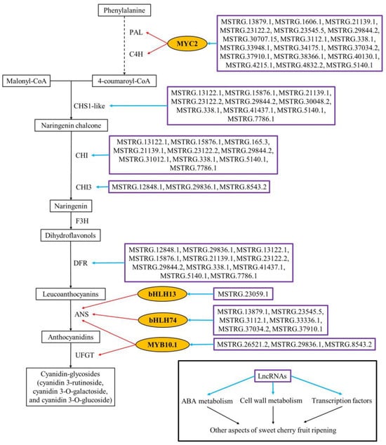 Liu, G.; Fu, D.; Duan, X.; Zhou, J.; Chang, H.; Xu, R.; Wang, B.; Wang, Y. Integrated Metabolome, Transcriptome and Long Non-Coding RNA Analysis Reveals Potential Molecular Mechanisms of Sweet Cherry Fruit Ripening. Int. J. Mol. Sci. 2024, 25, 9860. https://doi.org/10.3390/ijms25189860